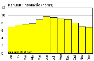 | Média mensal do número de horas de sol por dia. |