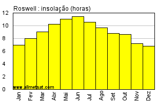 | Média mensal do número de horas de sol por dia. |