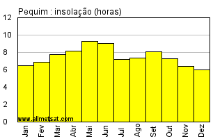 | Média mensal do número de horas de sol por dia. |
