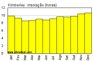 | Média mensal do número de horas de sol por dia. |