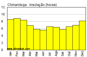 | Média mensal do número de horas de sol por dia. |