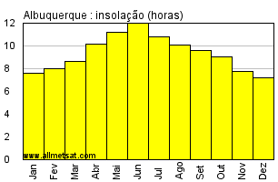 | Média mensal do número de horas de sol por dia. |